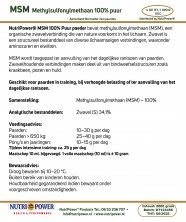 NutriPower MSM Equine Puur 100% staat voor Methyl-Sulfonyl-Methaan en is een natuurlijke vorm van organisch gebonden zwavel, een lichaamseigen stof met ongekende preventieve en therapeutische eigenschappen.